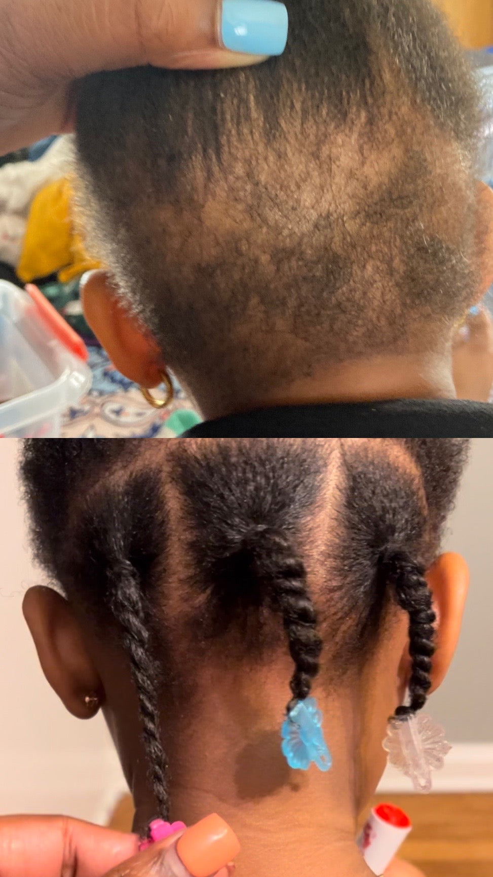 This hair oil can be applied to the hair and scalp as a hot oil treatment, added to Honey Whip deep conditioner to heighten the benefits, applied directly to scalp after styling to soothe tension and ultimately used daily to promote healthy hair growth.